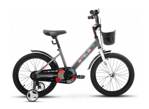 Велосипед, размер колеса 18", "Stels Strike VC", 1 скорость, рама 9.8" с доп колесами, серый