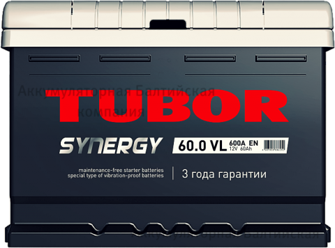Аккумулятор TUBOR SYNERGY 60 Ач R (низкий) заряжен