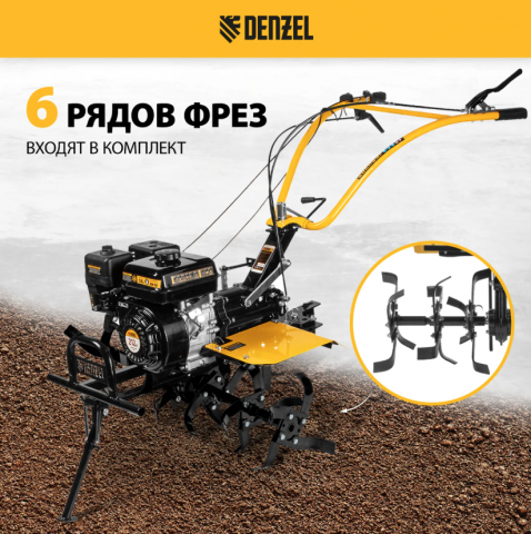 Мотоблок DPT-370X, 7 л.с., диск.сцеп, шир 90 см, глуб 35 см, фрез 3х4, ВОМ, передачи 3В/1Н DENZEL